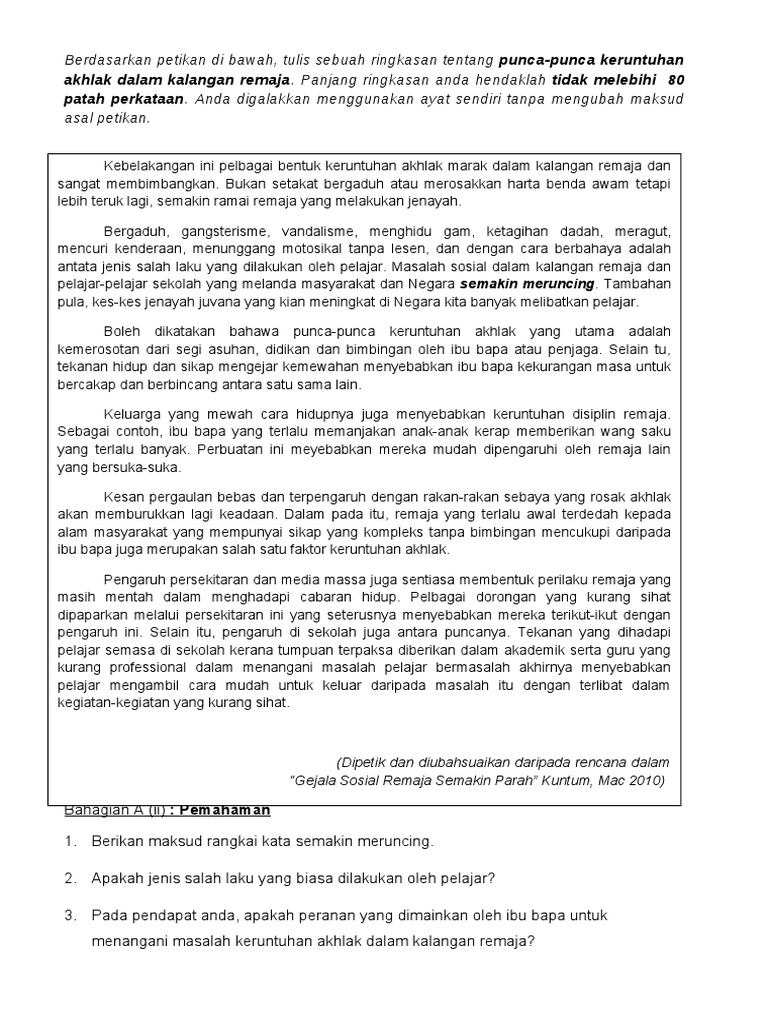 Laman Bahasa Melayu Spm Soalan Dan Cadangan Jawapan Soalan 1 Rumusan Dan 2 A Pemahaman Teks Umum Peperiksaan Percubaan Negeri Melaka